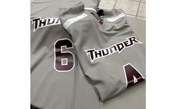Heat Press and Print Press are the perfect process for numbering team jerseys, or doing small orders of custom designed items. And when using print press there is no limit to the number of available colours.
