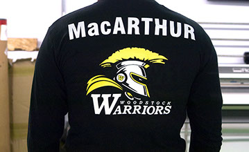 We offer high quality screen printing on many different styles of clothing. We can print up to 6 colours at a time, and can ensure that your garment looks the way you want it to.